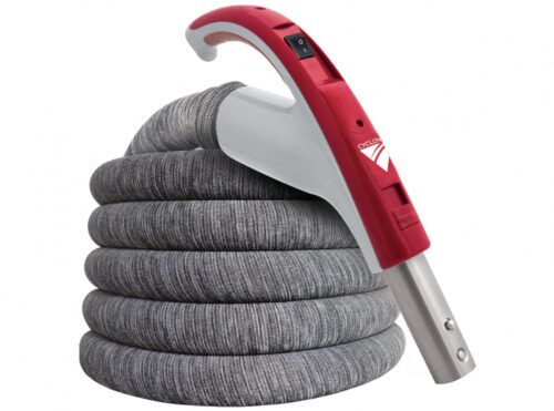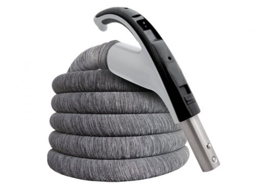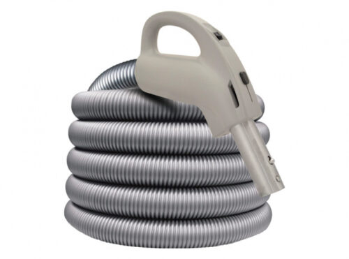 HFL13830P Deluxe Low Voltage Central Hose 1 3/8″ X 30′ With Swivel Gas Pump Handle Button Lock Tube Air Releif On Off Switch Crushproof Light Grey Color