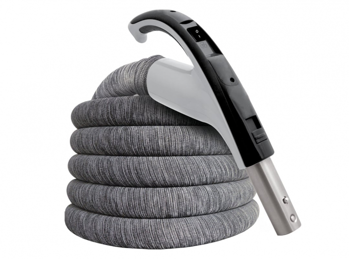 Hose for central vacuum with 24V on/off interruptor, integrated on handle, which allows you to start and stop your central cleaning system as you wish. Manufactured in Canada, this high quality hose can be easily handled, for it has a 360° swivel which prevents it from twisting. It also features a slender and soft ergonomic handle for a comfortable, non-slip grip. The airflow control allows you to manually increase or reduce airflow and the button lock keeps attachments from sliding off and makes them easy to change.